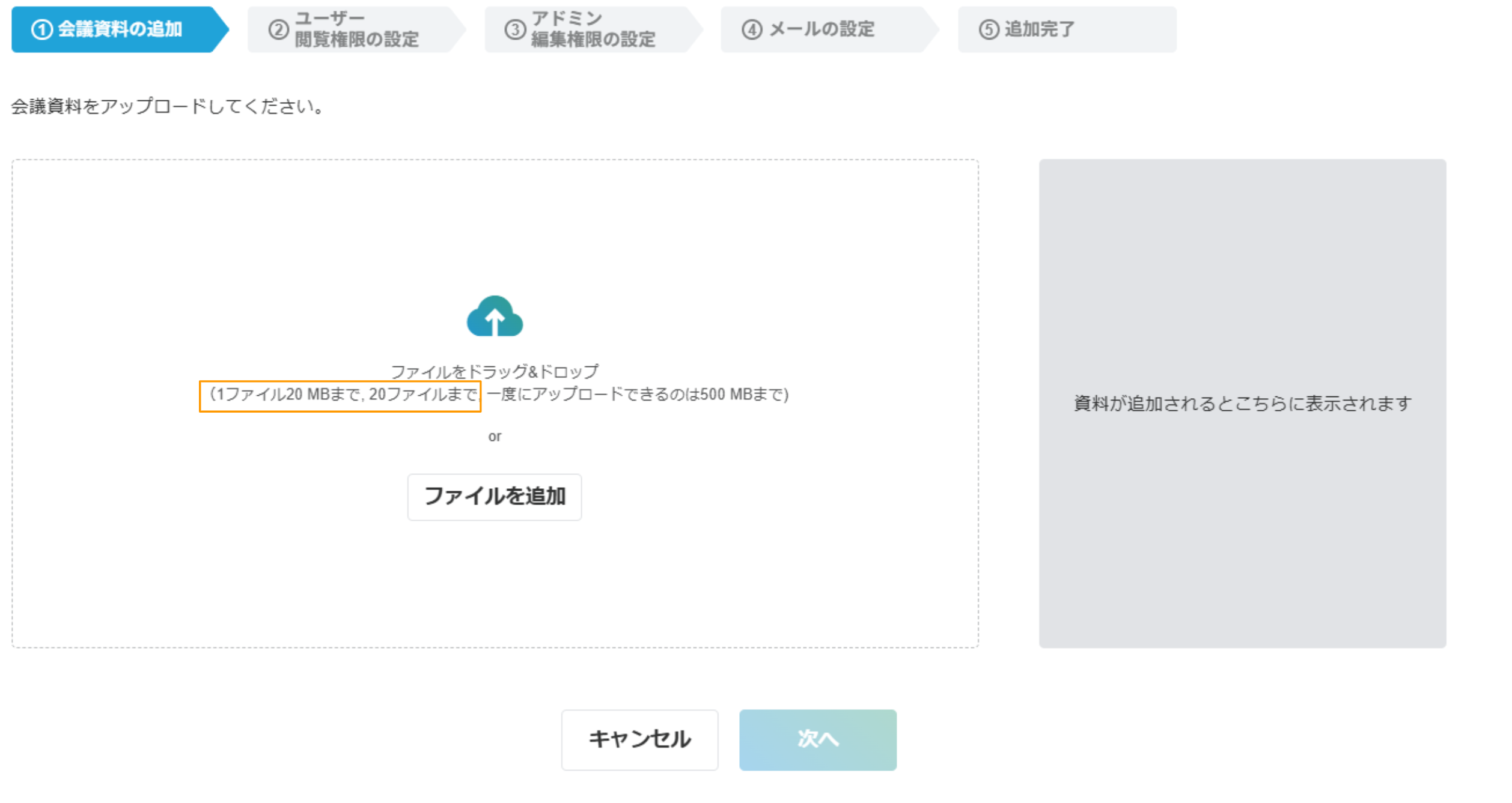 - アドミン側の「会議資料」のアップロード画面上の表示確認、もしくは、ミチビクサポートにご質問ください。