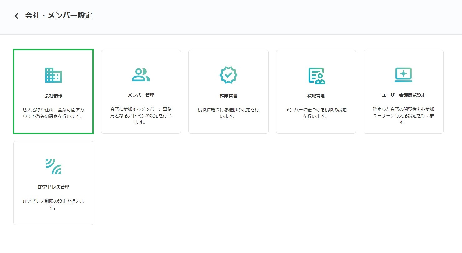 「会社・メンバー設定」の画面で「会社情報」をクリックします。