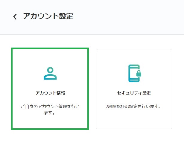 「アカウント設定」の画面で「アカウント情報」をクリックします。