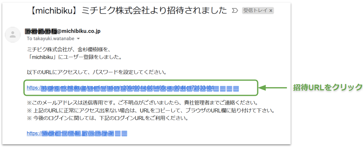 - 1社目の登録と同様、招待のメールが届くので、URLをクリックください。