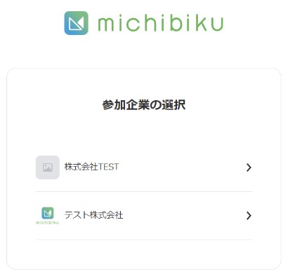 「参加企業の選択」画面に遷移するので、ログインしたい企業名をクリックします。
