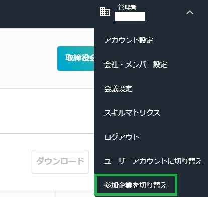 ログイン後に会社を切り替えたい場合は設定メニューの「参加企業を切り替え」をクリックします。